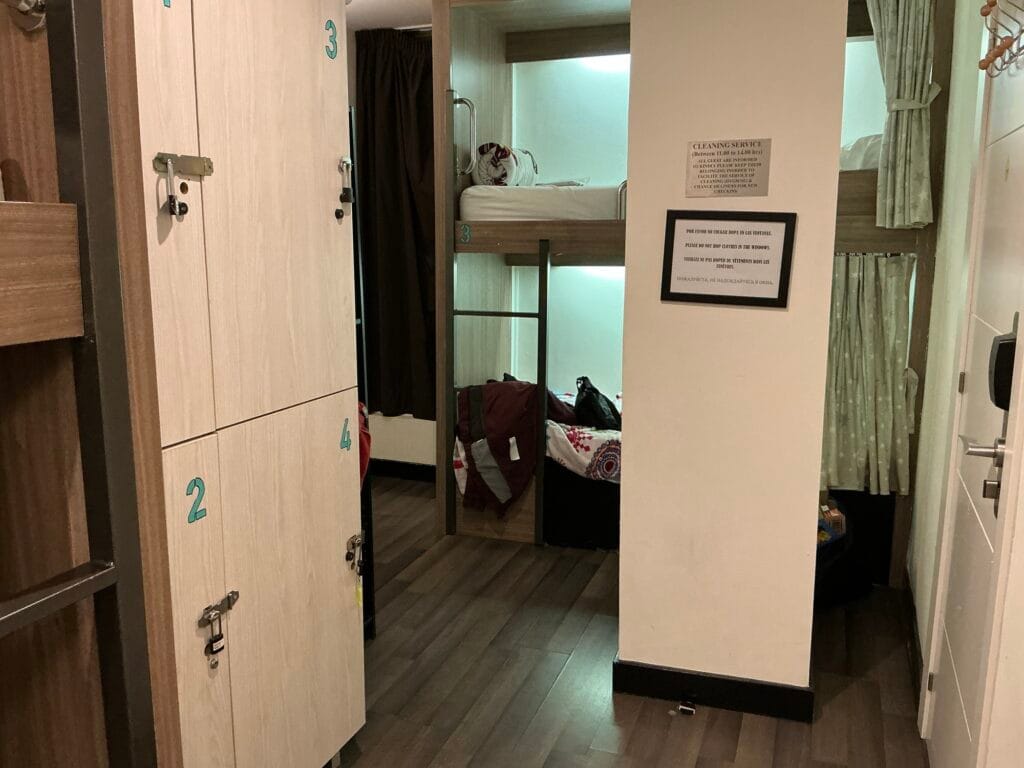 Respecto a la comodidad de la habitación, son amplias, tienen buena iluminación general y en las camas también cuentan con una luz individual, así como también enchufes y un pequeño estante para dejar tus cosas. Algo que me encanta, y que por suerte estoy viendo cada vez en más hostels, son las cortinas en las camas, que te ofrecen mucha más comodidad y privacidad. Y como no podía ser de otra manera, tienen además lockers para cada huésped, y un extra, te dan ellos el candado para que cuides tus cosas. Ese es un plus que casi nadie brinda!