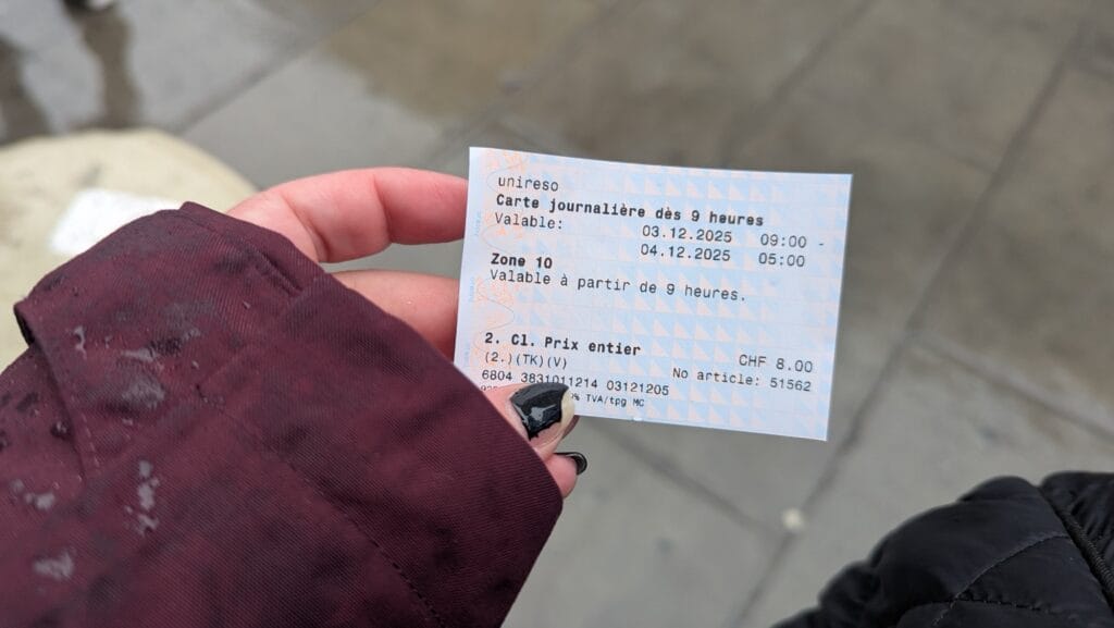 La ciudad de Ginebra ofrece a los turistas un pase de transporte totalmente gratis para los días que dure tu estadía en la ciudad. Había recibido, e ignorado, un mail del hostel donde me lo indicaban, pero como me habían tratado de estafar en otro hostel, directamente lo ignoré. Mala mía!